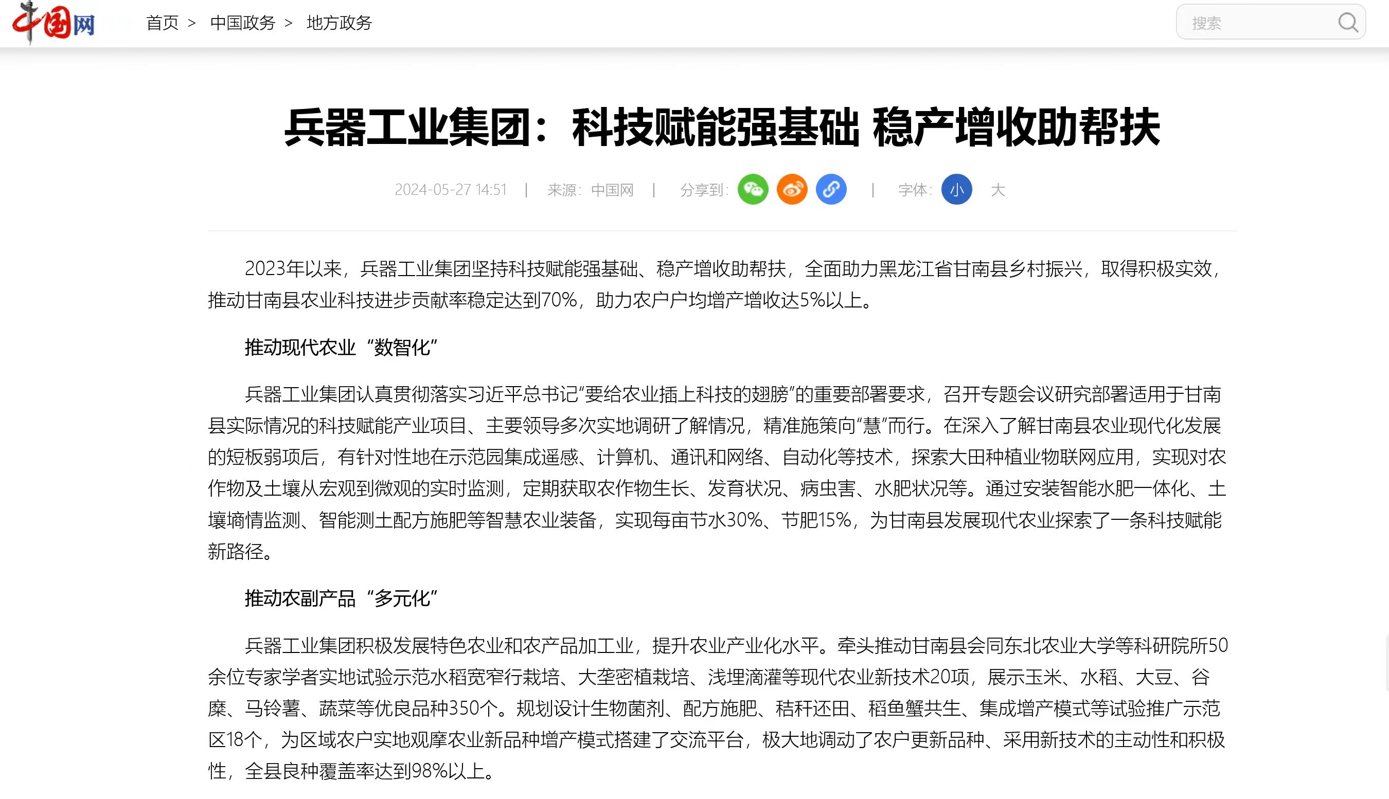 中國網報道兵器工業集團科技賦能 助力黑龍江省甘南縣鄉村振興 |