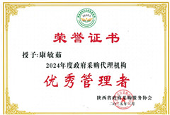 康敏茹同志榮獲“2024年度政府采購代理機(jī)構(gòu)優(yōu)秀管理者”稱號(hào)