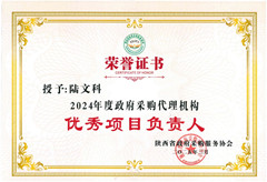 陸文科 、王攀宏、丁杰榮獲“2024年度政府采購代理機(jī)構(gòu)優(yōu)秀項(xiàng)目負(fù)責(zé)人”稱號(hào)。
